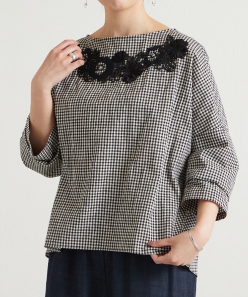 Aラインシルエットのギンガムチェックブラウス。ゆったりとした襟元に、ブラックのお花の刺繍がアクセントになっています。後ろ裾にかけて斜めにカットしているので、前身頃は長すぎない着丈、後ろ身頃は腰回りが隠れ、バランスよく着られるデザイン。同じシリーズでワンピースがございます。⇒テープ刺繍ギンガムワンピースBEZ1021509A0005\33,000(税込)・胸のボリュームが気になる方にオススメ伸縮性:なし透け感:なし裏地 :なし《商品画像について》ご覧頂いている商品の写真につきましては、できるだけ実物の色に近くなるように努めておりますが お使いの環境(モニター、ブラウザ等)の違いにより、色の見え方が実物と若干異なる場合がございます。 予めご了承ください。 《予約商品について》・こちらの商品はサンプルでの撮影・計測となっております。実際の商品とは、商品の一部仕様が変更になる場合がございます。・サンプルの為、混率の詳細が確定しておりません。確定次第、記載いたします。・工場の生産の都合上、納期が変更になる場合がございます。発送日の前後についてはあらかじめご了承ください。・入荷状況により、お客様への発送が店頭販売より遅れる場合もございます。《ハートをタップして商品のお気に入り登録》登録カラーの商品の「残りわずか」「再入荷」「値下げ」通知を受け取ることができます。ブランドフォロー 新商品などの入荷情報、最新のニュースやお得な情報を受け取ることができます。