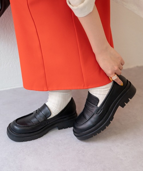 トレンド感のあるマニッシュな厚底ローファー 視線を惹き付けるボリュームソールで重厚感たっぷりに仕上げたローファー。 程よい高さのソールで歩きやすさはもちろん、スタイルアップも叶います◎ フェミニンコーデのアクセントやクールなスタイリングの仕上げなど、シーズン問わず様々なスタイルに合わせられる1足です♪ ※ご覧のモニター環境や撮影環境により実際の商品と多少色味が異なって見える場合がございます。 【お気に入り登録がオススメ!】 ●商品のお気に入り登録 「在庫残りわずか」の通知や、「完売カラーの再入荷」、「セール」の通知を受けることができます。 ●ブランドのお気に入り登録 新商品や再入荷等、ブランドのお得な情報を受け取る事が出来ます。