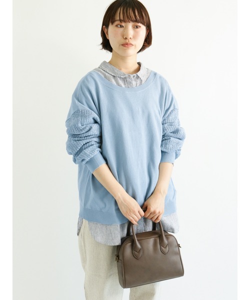 レースのような透かし模様のスリーブが可愛らしいニット。 前後着可能なので2WAYのスタイリングが楽しめるのも魅力。きゅっと結んだ3連リボンが甘さをプラスするアクセントに◎ シーズンらしいカラーを加えた色展開にも注目です。 ※商品画像は、撮影環境やお客様のご利用のPC・スマートフォンのモニター環境などにより実物と色味に差異がある場合がございます。 ★《お気に入り登録》でお得な情報をGET★ ① 商品ページ内のハートマークをクリック! ② 以下通知が受け取れます! 「再入荷」「ラスト1点」「特別セール」etc.. \ブランド、ショップのお気に入りも是非!/