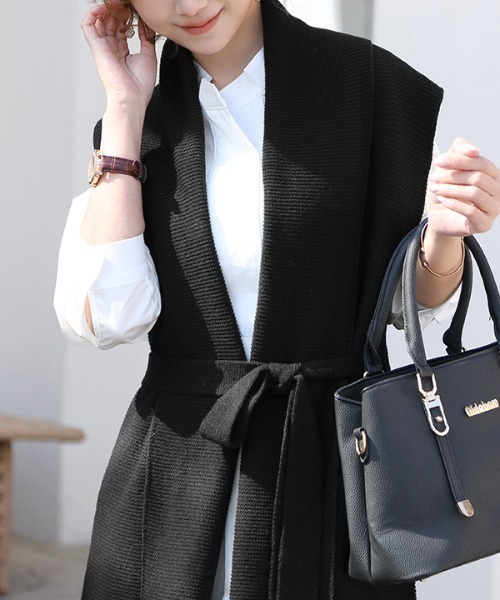 *Iラインロングニットベスト* 大人の洗練度UP!ロングニットベスト いつものコーデに羽織るだけサマになる”大人の洒落感”。 高さのある襟デザインが顔まわりを映させ、スタイリッシュなワンポイントに。 立体的な肩のラインで どんなトップスとも着膨れしにくく、レイヤードしやすい。 ウエストマークに使える同素材のベルト付きで、メリハリをつけたい時にも着回せるアイテム。 ワンピースに重ねてレディなレイヤード風や、ベーシックなパンツスタイルに合わせてこなれた上級者のオフィスコーデにも◎ …………………… 透け感:なし 厚さ:ふつう 伸縮性:あり 裏地:なし ポケット:なし 洗濯方法:手洗い可/ネットに入れて洗濯機可 …………………… ※詳しいお手入れ方法は商品タグをご参照ください。 ★お買いものをよりお楽しみいただく為に!★ ◆商品のお気に入り登録 お気に入りアイテムの完売カラーの再入荷通知や、ラスト1点の通知、セールの通知も受け取ることができます。 ◆ブランドのお気に入り登録 新商品や再入荷など、クーポン配布などのお得な情報を受け取ることができます。 ※商品画像は撮影時の光や角度により、実物の色味と異なって見える場合がございます。 ※撮影はサンプル品を使用しており、表示のサイズ感も実物とは若干異なる場合もございますので、予めご了承ください。 ※生産時期により色・素材・サイズ感など多少異なる場合がございます。予めご了承ください。