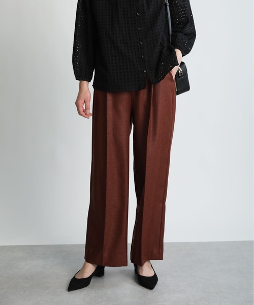 上品見えする大人のリネンライクイージーパンツ。涼し気な風合いのリネンライクの生地は、ほんのりと光沢感があり、カジュアルスタイルでも品よく見せてくれます。フロントにタックやセンタープレスを施すことで、カジュアル以外にもキレイめにも重宝する一枚に仕上げました。後ろウエストはゴムを使用し、ストレスフリーな履き心地と着脱も楽になっています。Tシャツ、ブラウス、カーディガンとトップスを選ばずに使え、ワンピースとのレイヤードにも◎です。※裏地なし※撮影場所や明るさにより実際の商品と色味が若干異なる場合がございます。 ☆商品のお気に入り♡登録を押せば”再入荷通知”や”残りわずか通知” 値下げのお知らせが届きます!お気に入りのブランド登録していただければ新商品入荷のお知らせも届きますので是非登録してみて下さい