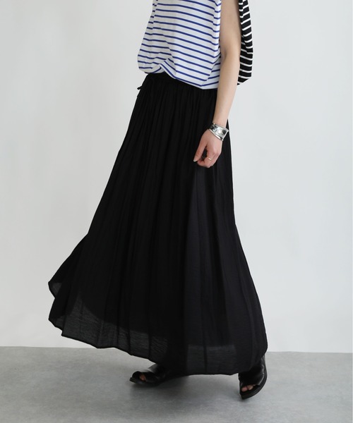 涼し気な風合いがポイントのロングスカート。ほんのりと透け感のある生地をたっぷりと使用し、歩くたびにひらりとなびくシルエットも◎な一枚です。Tシャツ、ノースリーブで合わせた大人カジュアルスタイルやリゾートシーンにも活躍してくれます。※ピンクの着用写真は赤っぽく映っておりますが実際のお色味はトルソー着用画像のフューシャピンクになります。※裏地あり※撮影場所や明るさにより実際の商品と色味が若干異なる場合がございます。 ☆商品のお気に入り♡登録を押せば”再入荷通知”や”残りわずか通知” 値下げのお知らせが届きます!お気に入りのブランド登録していただければ新商品入荷のお知らせも届きますので是非登録してみて下さい