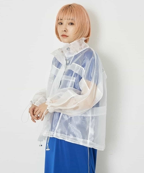 【デザインポイント】 透け感のあるオーガンジー素材。 胸のパッチポケットがアクセントに。 袖口と裾口をお好みで調節して ご着用いただけます。 【スタイリング】 デニムなどのシンプルなボトムと合わせると、 トップスとのなじみが良く、バランス◎