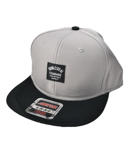 スクエアのピスネームを縫い付けたシンプルなCAP。バック部分にはラウンドロゴ刺繍が入る。スナップバッグでサイズ調整が可能になっています。