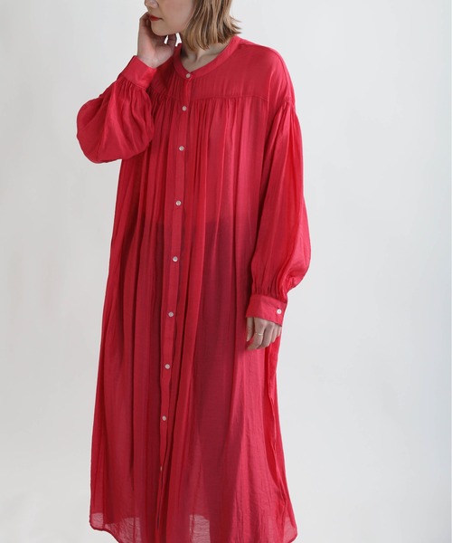 ふわっと軽やかな風合いのワンピース。 ほんのりと透け感のある春夏らしい涼し気な生地を使用。 シンプルなデザインにフロントやバックにギャザーを施し、 動きのあるシルエットをプラス。 ベーシックなブラックとコーデのアクセントにぴったりな鮮やかカラーの展開で、 春夏スタイルが楽しめます。 ワンピースとしてはもちろん、ボトムとのレイヤードや 羽織りとしても◎ ※ピンクはトルソー着用写真が一番実物に近いお色味になります。 ※裏地なし ※ワンピースとして着用の際は、お持ちのペチコートの着用をおすすめします。 ※撮影場所や明るさにより 実際の商品と色味が若干異なる場合がございます。 ☆商品のお気に入り♡登録を押せば ”再入荷通知”や”残りわずか通知” 値下げのお知らせが届きます! お気に入りのブランド登録していただければ新商品入荷のお知らせも届きますので 是非登録してみて下さい