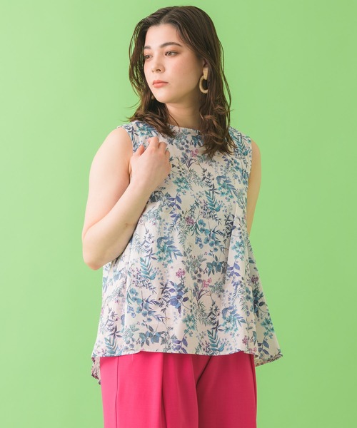 鮮やかなボタニカルプリントが目を引く綿100%ブラウス。 ○POINT ・前身頃には左右非対称のタックが入ったさり気ないアシンメトリーデザイン ・Aラインシルエットによるフレアが春夏らしい ・年齢を選ばないデザインで、誕生日や母の日など、プレゼントにもおすすめ ○STYLING ・爽やかなボタニカルプリントはデニムと合わせるだけで季節感のあるコーディネートに。 ・カラーカーディガンとのコーディネートで今年らしく。