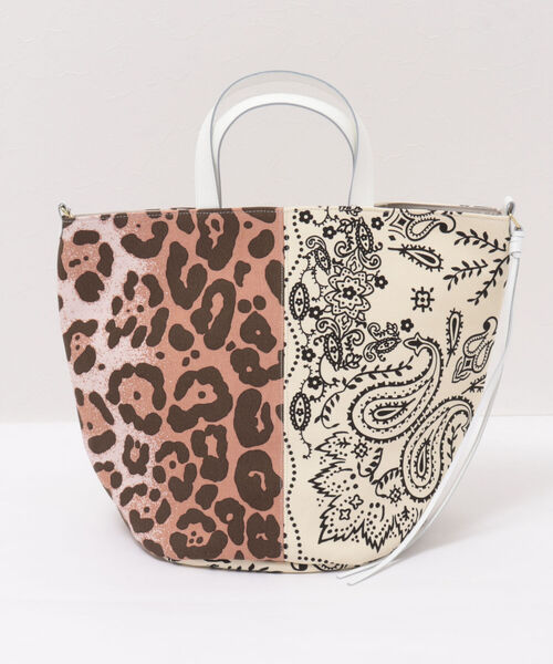 NOLLEY’S◇WEB限定アイテム◆Point・2柄を組み合わせたデザインが目を惹くトートバッグ・キャンバス生地にスカーフ柄をプリントしたデザインが個性的・レザーのハンドルが高級感をプラス。・底が丸型でマチが広く、丈夫な生地で荷物もたっぷり入るサイズ感も魅力・コーディネートにアクセントをプラスしてくれる、映えアイテム【manipuri (マニプリ)/日本】パリのヴィンテージスカーフをこよなく愛するデザイナーがその素晴らしさをたくさんの人へ伝えたいという想いで立ち上げたスカーフやストール、メンズのチーフを取り扱うMADE IN JAPANのブランド。素材や織りに徹底的にこだわり、どんな巻き方でも美しく計算されたサイズ感で、誰もが着心地良く美しい絵を身に着けられるよう毎シーズン研究を重ねています。日本だけでなく、フランスやイギリスなど、ヨーロッパを中心に15ヵ国で人気を集めています。●お取扱い上のご注意●※アテンションタグを必ずご確認の上、着用又はお取り扱い下さい。気になる商品は、お気に入り登録がオススメです!クーポン情報、入荷情報が、通知されるようになります。※店頭及び屋外での撮影画像は、光の当たり具合で色味が違って見える場合があります。 商品の色味は、スタジオ撮影の画像をご参照下さい。※商品画像に関しては出来る限り忠実に表示出来るよう努めておりますが、 お客様がご利用のモニターの設定及び特性により、実際の商品と比較し色味に若干の誤差が生じる場合があります。