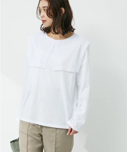 大きめのセーラーカラーが目を惹くプルオーバー。肩回りをカバーしてくれるので、華奢魅せも狙える一枚です。 ふわりとエアリーなゆとりのあるシルエットに、後ろ下がりなヘムラインがリラクシーな装いに◎ボトムスイン、アウトスタイルのどちらもサマになるデザインなので、幅広いスタイリングにマッチしてくれます。 【素材】 透け感[無し]※オフホワイトやや有り 裏地[無し] 伸縮性[やや有り] 光沢感[無し] 生地の厚さ[普通] 付属品[無し] ポケット[無し] ● Green Parks ● (グリーン パークス) 20以上の人気ブランドを取り扱うアパレルセレクトショップ。 ベーシックながらもさりげなくトレンドを取り入れたオリジナルブランドchocol raffine robeも展開。 ▼ 商品のお気に入り登録がおすすめです ▼ 商品ページ内のハートマークをクリック。完売時の再入荷や、最後の1点の通知、コーディネート画像がアップされたとき、お得なお値下げの際の通知を受ける事ができます。 【お知らせ】ページでも通知が確認できます。