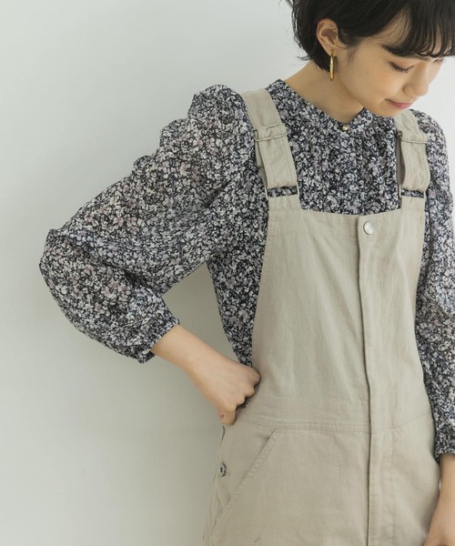 【華やかな小花柄が目を惹くプリントブラウス】 小花柄のプリントをあしらったジャガード生地のブラウス。柄が細かいので透け感が気になりにくく、カジュアルな雰囲気を纏ったデイリーに使いやすいデザインです。身頃には裏地を付け安心感のある着心地ながらも袖には裏地を付けないことで抜け感をプラス。小柄な方でも着やすいようやや短めの着丈設定に仕上げているので、高身長の方にはハイウエストのボトムとのコーディネートがオススメです。 POINT ・1点投入でコーディネートに華やかさをプラスする小花柄 ・シーズンライクな袖の透け感 ・ボトムとのバランスが取りやすい着丈 COORDINATE 柔らかい素材なので、ハリのある素材のボトムとの相性が良いです。シンプルにデニムやオーバーオール、キャミワンピースのインナーとしても◎ ※商品画像は、光の当たり具合やパソコンなどの閲覧環境により、実際の色味と異なって見える場合がございます。予めご了承ください。 ※商品の色味の目安は、商品単体の画像をご参照ください。 ----------------------------- 透け感 : ややあり(袖のみ) 伸縮性 : なし 裏地 : あり(身頃のみ) 光沢 : なし ポケット : なし -----------------------------