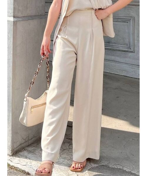 リラックス感がありながら大人っぽく決まるワイドパンツウエストはコルセット調のデザインにし、ウエストラインが綺麗に見えるようにしました。ハイウエストなのでクロップド丈のトップスはもちろん、パンツ自体はベーシックな造りなのでオーバーサイズのトップスを合わせても◎キャミ・シアーシャツ・ジレでのセットアップ着用もオススメ!