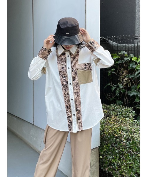 柄と無地の生地の切り替えがポイントのENVYMらしいビッグシルエットSHです。 インパクトのあるデザインですが落ち着いたカラー配色で程よいバランス感に。 1枚で様になる主役アイテムです。