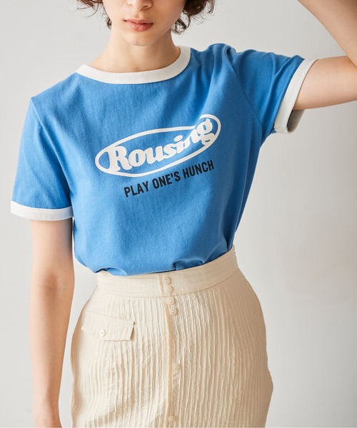 肌触りの良い綿天竺素材のリンガーTシャツ。コンパクトなサイズに配色の効いた襟ぐり、袖口、レトロなロゴプリントがかわいらしいデザインです。 一枚でも、コーディネートのはずしアイテムとしてシャツ羽織のインナーやジャンスカのインナーにもおすすめです。 ※ロゴの意味「Rousing」活気づける、奮いたたせる「play one's humch」直観で行動する ●商品特性● 〇透け感:ややあり 〇生地の厚さ:普通 〇裏地:なし 〇伸縮性:あり 〇光沢:なし 〇シルエット:スモール 〇インフォメーション〇 ★商品のお気に入り登録 登録すると、完売しても再入荷時に通知を受け取ることができます。 ほかにもお得な特典があるかもしれません♪ ★ブランドのお気に入り登録 新商品や再入荷などの情報を受け取ることができますので、是非ご登録ください♪