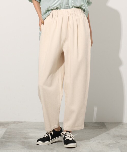 【デザイン】丸みのあるシルエットが大人かわいいバルーンパンツ。大人かわいいリラックスコーデから、襟付きブラウスを合わせてハンサムな着こなしまで幅広く活躍します!体のラインを拾わないゆとりのあるシルエットは、今っぽさを取り入れた1枚です。※ポケット数:横×2、後ろ×2【生地感】程よい生地感なので、ロングシーズン穿いていだけます。※裏地なし#CutieBlonde#Cutie#cutieblonde#cutie#キューティブロンド#キューティ#20代#30代こちらの商品は主に夏に着用いただける商品です。モデル情報:身長165cm B80 W59 H85 着用サイズ:02(M)店舗へのお問い合わせ商品番号:256-64022●製品寸法:01(S):W65cm H110cm 股下62cm 前股上31cm 渡り幅35cm 裾幅18cm02(M):W68cm H113cm 股下63cm 前股上31cm 渡り幅36cm 裾幅18cm03(L):W72cm H117cm 股下64cm 前股上32cm 渡り幅38cm 裾幅19cm04(LL):W78cm H123cm 股下65cm 前股上32cm 渡り幅40cm 裾幅20cm備考: