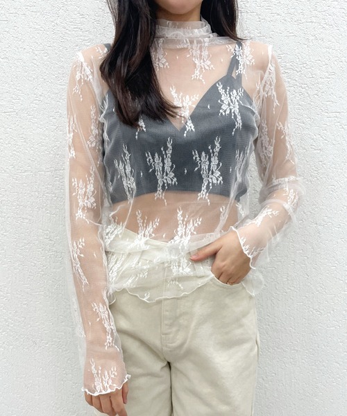繊細なフラワー刺繍にメロウデザインが、女性らしい魅力がたっぷり詰まったシアートップスです♪デイリーからオケージョンシーンまで着回し抜群◎ロングシーズン使えるのが嬉しい優秀アイテムです!※インナーキャミソールは商品に含まれておりません。 ■design / fabric・透け感のあるフラワーレースが女性らしくどこかエレガントな雰囲気漂う一枚。・襟元・袖口のメロー仕上げがフェミニンな印象に。・ボディラインを拾いすぎず優しくフィットする快適な着用感。・伸縮性の良い繊細なシアー素材を使用。■styling・春夏はインナーにキャミソールやタンクトップを合わせて肌見せコーデの主役に◎・夏の冷房対策や日よけにも大活躍!・秋冬はワンピースやスウェット・ニットの襟元からフリルをチラリと覗かせてインナーとして。・様々なアイテムとのレイヤードで着こなしの幅がグッとUP!・着こなし次第でロングシーズン着用可能!・ 1点投入でコーデに差がつくアイテム。 ・・・・・・・・・・・・透け感:あり伸縮性:あり光沢感:なし生地の厚さ:薄い・・・・・・・・・・・・