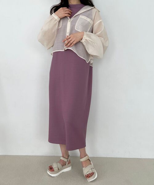 シンプルワンピにシアーシャツのコンビになっており、大人レディコーデがこれだけで決まるアイテム♪ ワンピースのボトルネックがシャツからのぞき、スタイリッシュな雰囲気もあるワンピースです◎ 後ろ姿はシャツとワンピのスリットがリンクし、リボンがポイントとなるかわいい仕上がりに☆