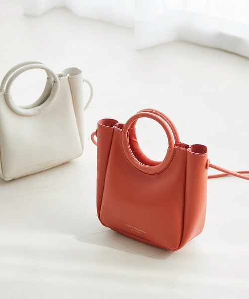 リングハンドルがレトロなムード。ショルダー掛けできて持ちやすい!【デザイン・シルエット】・日常使いのしやすいミドルサイズのトートバッグ。・リングハンドルとショルダーストラップ付きの2WAY仕様。【カラー】ブラック、アイボリー、オレンジの3色展開。【スタイリングポイント】・リングハンドルには、お気に入りのスカーフを巻きつけても素敵。・カジュアルときれいめ、どちらの着こなしにもマッチするデザイン。-----------------------------ポケットの数:外0個、中1個A4収納:不可能長財布収納:可能 (ギリギリ)ショルダー紐:あり(長さ調整可、取り外し可)-----------------------------※撮影時の光、お使いのモニター環境によって色の見え方が違う場合がございます。※バッグの中身は参考商品です。※ドラマ着用アイテム(16番色)