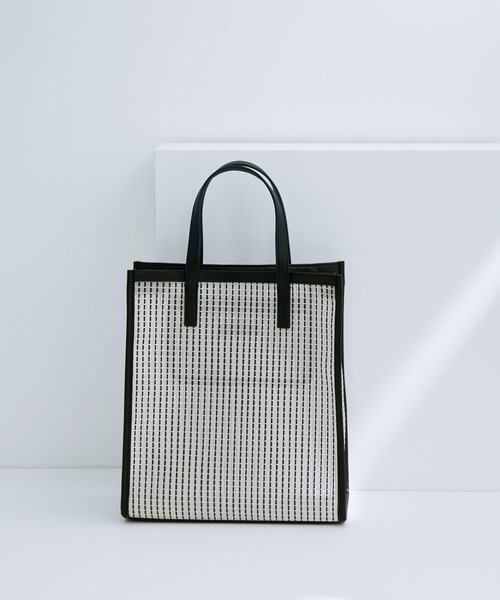 合わせるだけで抜け感のあるモードスタイルの完成。涼し気なメッシュ素材が春夏ムードをぐっと高めつつ、コーディネートを格上げしてくれるトートバッグ◇2022春夏◇ ADAM ET ROPE' FEMME 【Material】 PVCのメッシュ生地を使用。 【Design】 春夏らしい軽さと抜け感のあるメッシュトートバッグ。A4サイズのファイルやPCなどが収まる、計算されたサイズ感もポイント。側面や底面にフェイクレザーを使用する事で、デザインとしてだけでなく、きちんと自立するように仕上げたこだわりも。 【Color】 ブラック系、ブラウン系の2色展開。 【Styling point】 ベーシックなTシャツにタイトスカートを合わせるようなモードなスタイリングに、バッグを主役にして持つのがおすすめ。バルーンスリーブのトップスにショートパンツを合わせるような、今っぽい大人のカジュアルスタイルに合わせても素敵なのでぜひ。 ◇同素材で、巾着バッグ(品番:GAX02280)もご用意しております。 --------------- ポケットの数:内1個 A4収納:可 長財布収納:可 ショルダー紐:なし --------------- ※こちらの商品は予約にて受注を承っておりますが心斎橋パルコ店にてサンプルをご覧いただけます。