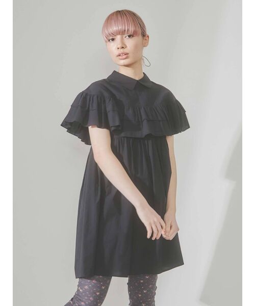 袖周りのケープデザインが目を引くシャツワンピース。ボリューム感あるディティールですがミニ丈になっているので、全体のバランスが重くならず〇薄手で柔らかい素材で軽やかに、そして涼しげな印象に。socksと組み合わせを楽しんでください。