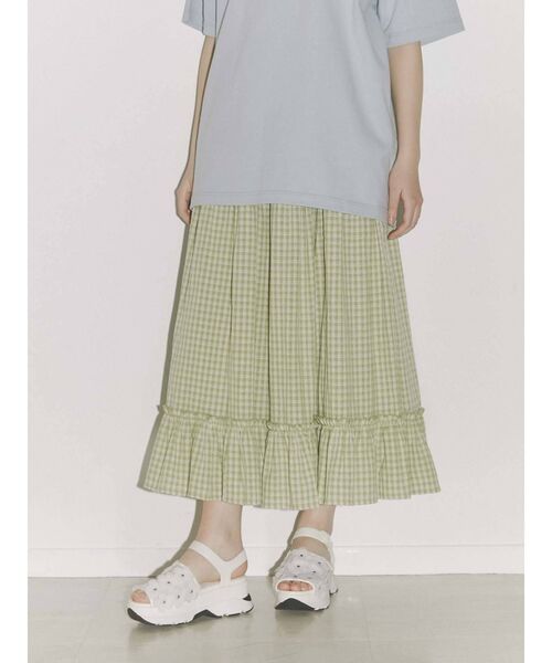 切り替えたティアードが動くたびにひらひらして春らしく、軽やかなフレアスカート。ウエストはゴム仕様になっていてストレスフリーな1枚に。着まわしやすいブラックと、春先にぴったりなグリーンの2色展開です。ブラウスやTシャツなど幅広いアイテムに合わせやすい1枚です。
