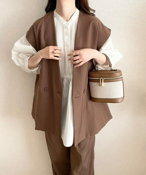 人気インフルエンサーTOMOさん コラボアイテム!オンオフ両方着回せる、シーズンレスなベスト。ポリエステルツイルの布帛ベストは羽織るだけで、トレンドライクな装いになります。■セットアップアイテム同色同素材のパンツとセットアップとして着用が可能です。商品品番:【238778】をZOZOTOWNの検索欄で入力していただくか商品名:【TOMOコラボ】2タックジョガーパンツ【セットアップ対応】と入力していただいても表示されます。【DESIGN】レイヤードスタイルを楽しめる、ミドル丈のベスト。お手持ちのベルトなどでウエストマークを付ける事でメリハリのあるシルエットにすることも可能。程よいゆとりで、合わせるアイテムを選ばない、万能アイテムです。【STYLING】同系色のカラーパンツを合わせてワントーンコーデに。フレアデニムパンツを合わせればシンプルな大人カジュアルコーデにも着こなせます。マーメイドスカートやサテンスカートで上品なフェミニンコーデが完成します。リネン素材のボトムスも夏コーデには最適でおすすめです。マキシ丈のティアードワンピースやキャミソールワンピースでこなれ感のあるコーデが完成します。インナーにはキャミソールやタンクトップなどを合わせていただけます。小物は、ショルダーバックやミニボストンバックで上品さをプラスするのも、カゴバックやトートバックでカジュアルダウンさせるのもおすすめです。オールシーズン使えて、様々なシーンで大活躍のベスト。シアーのトップスと合わせたコーディネートもおすすめです。【色展開】・ブラック(黒 黒色)コーデを引き締める、シックなカラー。・グレー(灰 灰色)様々な色合いと相性が良く、着回しに使えるカラー。・モカ(茶 茶色)大人の印象を与える、落ち着いたカラー。・ベージュ上品な色合いで、普段使いからカジュアルまで、着用シーンを選ばないカラー。【サイズ展開】・Mサイズ・Lサイズ【お買い物をお得にもっと楽しんで頂くために】▼商品のお気に入り登録▼完売カラーの再入荷通知や、ラスト1点の通知、プライスダウンしたセール通知も受け取ることができます。▼ブランドのお気に入り登録▼新作や再入荷等、いち早くブランドのお得な情報を受け取ることができます!