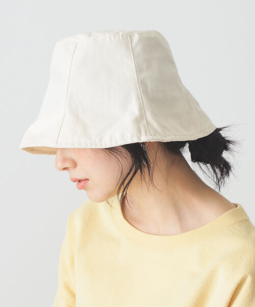 トレンドのシルエット 下がりブリム(つば)のシルエットが上品な印象のバケットハット。 カジュアルなキャンバス素材で、トレンド感のあるひと品に仕上げました。 春夏シーズン活躍必至のアイテムをぜひどうぞ。
