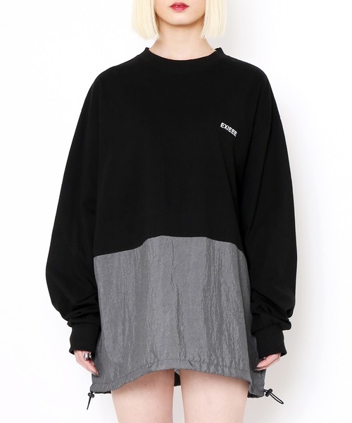 【異素材で切り替えたデザインロンT★】■DetailシンプルなロゴロンTをナイロン素材で切り替え、アウトドア&スポーティーな要素をプラスした1枚☆パープル×ブラック、ホワイト×イエロー、ブラック×グレーとどれもメンズライクなカラーリングで仕上げました◎胸元にはさりげないEXIEEE刺繍、裾は絞れるアジャスター付き。男女問わずユニセックスでお使い頂けて、プレゼントにもおすすめです。《お気に入り登録》・「商品のお気に入り登録」で再入荷通知や、ラスト1点の通知、セール通知も受け取ることができます。・「ブランドのお気に入り登録」で新商品や再入荷など、いち早くブランドのお得な情報を受け取ることができます。【EXIEEE/イグジー】ネオ渋谷系チャラ男漫才コンビ・EXITプロデュースブランド。「ゆりかごから墓場まで使えるアンチエイジングブランド」をコンセプトに、ルールにとらわれない自由なコーディネートで、老若男女どなたでも楽しめるユニセックスアイテムを展開。