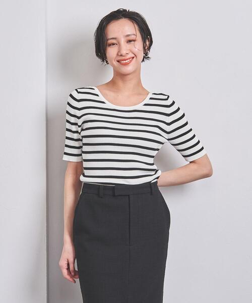U字型に広く開いたバックネックがポイントのニット。 ■デザイン ほどよくフィット感あるシルエットに、深すぎない前後Uネックの開きがポイント。 短すぎない五分袖で上品に着こなせるのも特徴です。 一枚着でもインナーとしても汎用性高く活用いただけます。 ■素材 清涼感のあるコットンポリエステル素材。 ■コーディネート デザインはシンプルにまとまりながらも、女性らしい後ろ姿をお楽しみいただけます。 さまざまなボトムスと合わせやすく、色違いで揃えるのもおすすめのアイテムです。 ============================ 裏地:なし 透け感:WHITEはややあり 生地の伸び:ややあり 光沢感:なし ケア方法:手洗い可・ドライクリーニング ============================ 【注意事項】 ※商品を使用前に、タグ等に記載されている「取り扱い上の注意書き」、「洗濯表示」を必ずご確認ください。 ※商品画像は、光の当たり具合やパソコンなどの閲覧環境により、実際の色味と異なって見える場合がございます。予めご了承ください。 ※商品の色味の目安は、商品単体の画像をご参照ください。 店舗へお問い合わせの際は、全国のUNITED ARROWS各店舗まで下記の品名/品番をお申し付け下さい。 品名:UWSC C/P BK/U 5SL 品番:15181360957