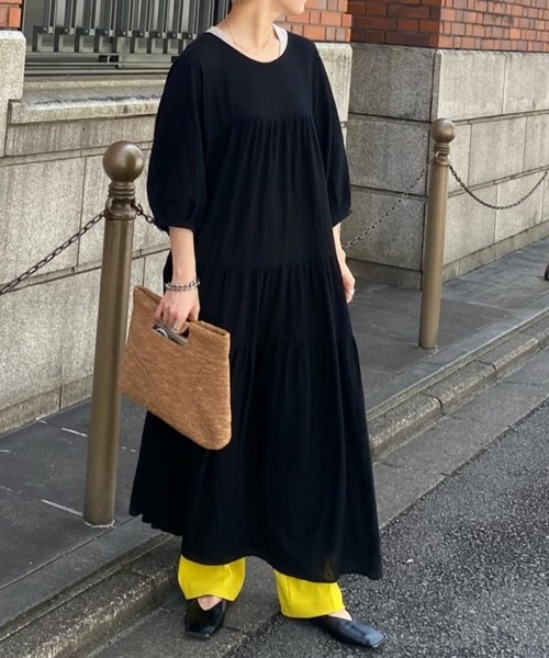 ティアード×バックツイストがコーディネートのアクセントになるワンピース・Aラインの広がった裾は、さりげなく体型をカバー・ゆったり楽に過ごせる身幅・袖ボリュームスリーブの7分丈・思わず背面を見せたくなるバックツイストデザイン・同じ形で柄タイプ(CPZ1021309A0004)あり【コーディネート】コットン100%で軽い仕上がりのワンピースはネックレスやサンダルを合わせて夏らしく。無地のワンピースなのでインナーには柄のタンクトップを合わせてもオシャレ度アップします。キャップやデニムでスニーカー合わせも◎軽くて楽なワンピースは真夏に重宝すること間違いなしです。透け感:あり伸縮性:なし裏地:なし光沢:なしケア方法:手洗い可【お買いものをよりお楽しみいただく為に!!】▼商品のお気に入り登録(ハートマークをクリック)お気に入りアイテムの完売カラーの再入荷通知や、ラスト1点の通知、セールの通知も受け取ることができます。▼ブランドのお気に入り登録新商品や再入荷など、クーポン配布などのお得な情報を受け取ることができます。
