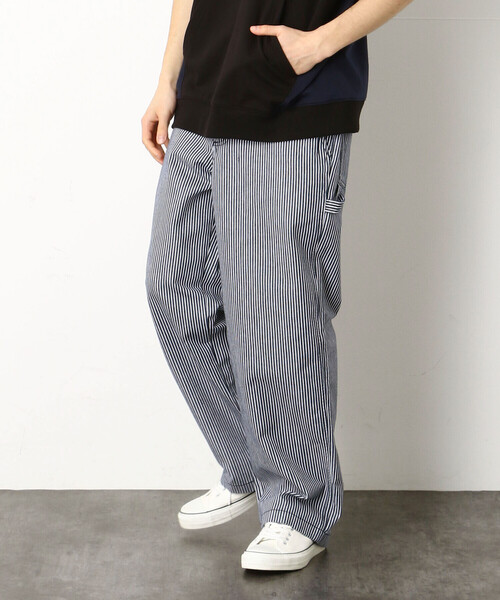 【素材】 綿にポリエステル、レーヨンが混紡された柔らかく着心地の良いヒッコリー素材です。 ヒッコリーとはワークウェアに良く使われる紺地に白ラインが入ったのが特徴のデニム生地、柄の一種です。 鉄道労働者が着用したのが始まりとされており、汚れが目立ちにくい点からヘビーユースの作業着やオーバーオール、カーペンターパンツなどに使用される場合が多い素材です。 【デザイン】 ワークウエアの代表的なボトムのペインターパンツです。 ヴィンテージのペインターパンツをイメージし、アメカジ定番のヒッコリー素材を使用して昔ながらの雰囲気に仕上げました。 ペインターパンツとは画家やペンキ職人が作業する際に着用していたワークパンツ。 作業で使うハンマーを吊るすためのハンマーループや、刷毛や筆を収納するためのツールポケットが特徴で、作業しやすいようにシルエットは太めです。 P&Yでは特徴的なディテールは残しつつ、コーディネートしやすいように太すぎず細すぎずのバランスの良いシルエットに仕上げています。 裏地:無し 伸縮性:無し 光沢感:無し 生地の厚み:普通 レディースにもおすすめです。 レディースモデル(H167 B82 W58 H85 着用サイズ:S) ※画像の商品はサンプルとなりますので実際の商品と仕様、加工、サイズが若干異なる場合がございます。 ※こちらの商品はFIVE FOXes独自の採寸方法となっています。 本サイトのサイズガイドと採寸方法が異なる場合がありますのでご了承ください。