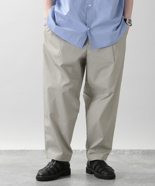 ーーー 税込み3,850円!コスパ最高のバルーンパンツ トレンドのバルーンシルエット。夏を快適に過ごせるシルエットと素材のイージーパンツが登場しました! ■シルエット 裾にかけてテーパードのかかった、トレンドのバルーンシルエット。 全体的にゆったりとしたシルエットなので、夏も快適に過ごしていただけます。 ■素材 ポリエステル65%・コットン35%の混紡素材。着心地が良く、乾きやすく、シワになりにくいため、「黄金ブレンド」と呼ばれています。 ポリエステルの機能性を持ちつつ、コットンの柔らかさや肌触りの良さを兼ね備えているので、夏を快適にしてくれます。 ■ディテール ウエストにはぐるりと一周ゴムが仕込まれており、外に付けられた紐で簡単に調整でき、イージーパンツのような穿き心地を実感いただけます。 タックを入れることで、腰回りはゆったりとストレスフリーな穿き心地を実現しました。 サイドはシームポケットを採用。後ろはピスポケットにすることで、よりシンプルでスタイリッシュな見た目に拘りました。 ーーー 極力シンプルな見た目に仕上げることで、取り入れやすくスタイリッシュな見た目に。 適度なワイドシルエット、イージー仕様なのでリラックス感もあってラクに穿いていただけます。