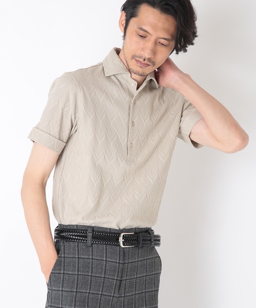ランダムピッチのヘリンボーンで落ち着いた印象に! 【セットアップアイテムとの相性抜群な「ポロシャツ」】 ビジネスにもプライベートにも使い勝手の良いポロシャツ。 クールビズやリモートワークが広がる今、最適な一枚です。 【デザイン・素材】 ランダムピッチのヘリンボーン柄。 同色のヘリンボーンなのでビジネスのインナーにもぴったり。 へリンボーンの凹凸が風合いを醸しており、一枚でもリッチな見え感。 生地表面にシルケット加工を施し、光沢感をプラスしているため上品な見え感です。 袖は折り返しのあるデザイン。 野暮ったくならない洗練されたシルエットとなっています。 【コーディネート】 ベーシックなデザインでジャケットやスラックスとも好相性。 「ホワイト」「ベージュ」「ネイビー」の着回しやすいカラー展開で、どんなシーンにもマッチします。 ジャケットを上に羽織るだけでビジネスに。デニムと合わせてオフスタイルに。 【着用モデル情報】 身長186cmバスト88cm ウエスト73cm ヒップ92cm 着用サイズ:03(L) 【CROWDED CLOSET(クラウデッド クローゼット)】 MEN'S BIGIのスーツレーベル。 確かなもの作りを基本に、ファッション性と機能性を備えた高品質なスーツスタイルを手ごろな価格で。変わりゆくライフスタイルに合わせてテーラリングされたビジカジウェアをご提供いたします。 ※生地や仕様・デザインにより、着用感が異なる場合がございます。 ※モニター・パソコン環境により色味に誤差が生じる場合がございます。予めご了承くださいませ。