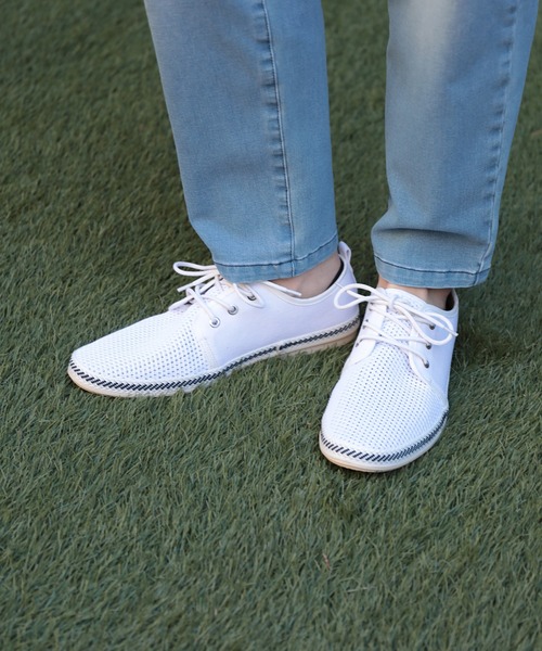 【fabric】 メッシュ素材を使用し、暑い夏でも快適な履き心地を実現したスリッポン。 柔らかく脚なじみの良いウレタンインソールを使用し、履き心地抜群です。 シンプルかつスタイリッシュなシルエットに、ソールのスティッチがアクセントになった飽きの来ないデザイン。 素足でもソックスを合わせてもスタイリング出来るアイテムです。 【style】 セットアップから、ジャケパンスタイル(ジャケットパンツスタイル)まで合わせられる1足。夏らしいアイテムとの相性は抜群です。 【モデルサイズスペック】 身長: 179cm バスト: 88cm ウエスト: 70cm ヒップ: 86cm 着用ウェアサイズ:Lサイズ 【UNION STAITON】 "ちょっとオシャレをもっと簡単に"をテーマとして掲げ、 ちょっとしたオシャレをより簡単に着こなせるアイテムを数多く取り揃えております。 細部にまでこだわったデザインと実用性と日々のケアがストレスにならない、 ファブリック選びを徹底的追求しております。 【2022S/S Delusion Trip】 UNION STATIONクリエイティブディレクターが当時旅したロサンゼルス「ユニオン駅」に懐古の念を駆せ、 「妄想旅行」というキーワードを軸にクリエイションを展開しております。当時の自身が収めた、 フォトグラフに感じた哀愁と美しい記憶を元に、西海岸の海とリゾート、LAカルチャーをイメージしたラインナップを構築。 新型コロナウィルス(COVID‑19)により身軽に旅行に行けなくなってしまった現代。 少しだけでも旅に出る前のワクワク感を思い出してほしい。 そんな気持ちをUNION STATIONはご提案させて頂きます。 ※屋外での撮影画像は光の加減で、実際の商品より明るく見える場合が御座います。 商品の色味は生地アップ・スタジオ撮影の画像をご参考下さい。 ※画像の商品はサンプルとなりますので実際の商品と仕様、加工、サイズが若干異なる場合がございます。 ※生産の都合上、納期が変更になる場合がございます。発送日が前後する可能性がございますので予めご了承ください。