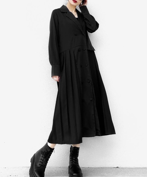【 LVEU × Ai 】人気インフルエンサー Ai セレクトアイテム1枚で即オシャレが完成するワンピースジャケット風のシルエットで、かちっと感がありつつもサイドのプリーツデザインが可愛らしさをプラス◎羽織りとしてもお使い頂けます。※着用環境や条件により稀に色移りすることがございますので淡色のものをご着用の際はご注意ください。▼LVEU./ラブユシンプル×モノトーンをベースにモードなデザイン性をプラス。トレンドを意識したモノトーンの世界観を発信するモードカジュアルブランド。