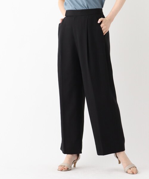 キレイ目にもカジュアルにも着まわせる、落ち感ワイドストレートパンツ【デザイン】スッキリとしたストレートなワイドシルエットが魅力のパンツ。落ち感のある素材で仕立てることでボリュームが出すぎず、軽快ながはき心地も魅力です。本開きの仕様で着脱しやすく、ウエストバックはゴム仕様ではき心地も快適です。同素材のジャケット(637-44020)と合わせたセットアップスタイルもおすすめ。※ポケット数:横×2 後ろ(ダミー)×2※前ファスナーあき・後ろゴム仕様【素材】仏「DELEGANT/デレガント」社のサスティナブルなセルロース素材を使用。ほどよいドレープ感とさらりとした滑らかなタッチが魅力で、ツヤ感のある上品な素材感が良質さを引き立てます。ご家庭でのお洗濯が可能な機能性もうれしいポイントです。この商品の表地はフランスで企画し、中国で製造された生地を使用しています。※裏地なし※ディープブラウン(044)はやや透け感があるため、インナーの着用をおすすめします。※WEB限定サイズ:36(S),42(LL)こちらの商品は主に夏に着用いただける商品です。モデル情報:身長165cm B80 W60 H86 着用サイズ:38(M)店舗へのお問い合わせ商品番号:637-64025●製品寸法:36(S):W64~67cm H88cm 股下66cm 前股上31cm 渡り幅32cm 裾幅25cm38(M):W67~70cm H90cm 股下67cm 前股上32cm 渡り幅33cm 裾幅26cm40(L):W70~73cm H92cm 股下68cm 前股上33cm 渡り幅34cm 裾幅27cm42(LL):W72~75cm H94cm 股下69cm 前股上33cm 渡り幅35cm 裾幅27cm備考: