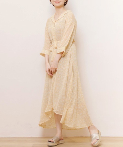 ヴィンテージライクな小花柄が今季の雰囲気にピッタリなガウンワンピース♪前回も好評をいただいたワンピースがPinkはそのままに、新たに今年らしいYellowを加えて登場です!柔らかなシフォン素材と開襟の組み合わせなのでラフな印象になりすぎないのが◎共布のリボンはゆるく後ろで結んだり、ぎゅっとウエストマークすればスタイルアップやブラウジングで若干の丈調整も叶います♡前を閉めてワンピースとしても、開けてガウンとしても着用いただける2way仕様のアイテムなので、シチュエーションに合わせラフに着こなしたい時にはガウンとしてお使いいただいたり、デートにはワンピースできちんと感を出した着こなしがおすすめです♡ワンピーススタイル用にインナーもセットで付いているので安心して着用いただけます。【お買い物を上手にお楽しみいただくためのPOINT2つ】◎ 購入ボタン横の ♡ (ハートマーク)をクリック! 完売カラーの再入荷通知、残り1点の通知、セールの通知を受け取れます。 (クリックまたはタップで商品のお気に入り登録♪)◎ ショップのトップページにある ♡ (ハートマーク)「お気に入りショップに追加」をクリック! 新商品や再入荷等、いち早くブランドのお得な情報を受け取れます。 (ブランドのお気に入り登録♪)
