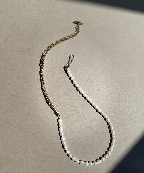 おしゃれ心くすぐる新鮮なデザイン●POINT・前後でイメージが変わる2wayスタイル・デイリーからパーティーまで幅広く・甘辛MIXでいつものコーデをアップデート●デザインライスパールとチェーンをMIXしたネックレス。 程よいボリューム感なので様々なスタイルに合わせて頂けます。 フックを留める位置により長さの調整、また前後の着け方でアレンジを楽しめます。●サイズ首周り:約42~54cmパール:約0.7×0.6cm●素材淡水パール、真鍮(k18gd+アンティーク加工コー ティング) 【in mood(インムード)】その時々の”気分で”様々なスタイルを楽しむ大人の女性に向けてのブランド。「リアルクローズに合わせられる品のあるアイテム」in moodのアイテムをMIXすることにより、リアルクローズでありながら華のあるスタイルを目指しています。「ファッション好きな女性が、毎シーズン好みのアイテムを買えるように」という思いから、主に真鍮などを素材として使用することで手の届く価格帯を実現しています。--------------------------------------------------------------------------------【注意点】※画像の商品は光の照射や角度、お使いのモニター環境により、 実物と色味が異なる場合がございます。あらかじめご了承下さいませ。--------------------------------------------------------------------------------【『♡』をクリックでお気に入り登録】・ラスト1点や再入荷の通知が届きます。 --------------------------------------------------------------------------------#今買いアイテム