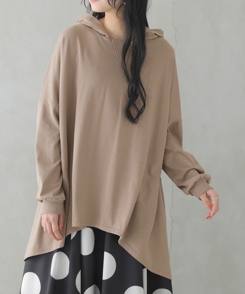 『心惹かれる洗練シルエット。』"ひらり、フレア"ニュアンス溢れる、こなれパーカー。裾に向けて広がったフレアシルエットが歩くたびに印象的に揺れる。たっぷりと生地を使用しているから、後ろの着丈が長めになっていて気になるところも隠してくれる。また、襟口から繋がったフードは他にはないお洒落を楽しめます♪やや薄手のさらりと肌触りの良いカットソー素材で、これからの季節だけではなく、重ね着次第でロングシーズン着用いただけます。差のつくお洒落が手に入る≪n'OrLABEL≫フレアシルエットパーカーです。