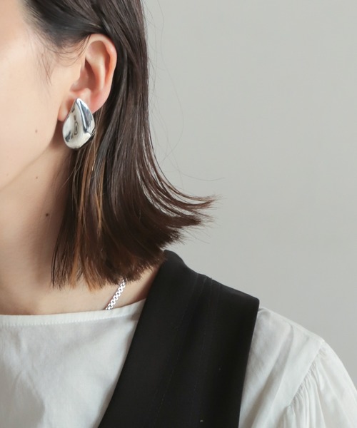 【rapiécage ラピエサージュ】 ■ビッグビーンズモチーフイヤリング 変形した雫型のシルエットが目を引くイヤリング。ボリュームがありつつも中心部分が少し浮き出た立体的なフォルムが、抜け感を作ります。 春夏らしい涼し気なシルバーのメタル。表面に磨き加工を入れることで、よりつや感をプラスしクリーンな印象に。 柄ブラウスや、麻のワンピースなどラフな着こなしの引き締め役として重宝。 アクセサリーをたくさんつけることに抵抗のある夏の時期に、ワンポイントとしておすすめな1点です。 ※商品はrapiécageオリジナルBOXに入れてのお届けになります。 ※イヤリングパーツはクリップ式でシリコンカバー付きなので安心して使用いただけます。