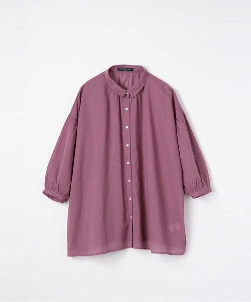 ボリュームのある袖デザインとシルエットが女性らしい印象のシャツブラウス。 たっぷりと施した細かなギャザーとコンパクトなシャツカラーとのバランス感も魅力です。