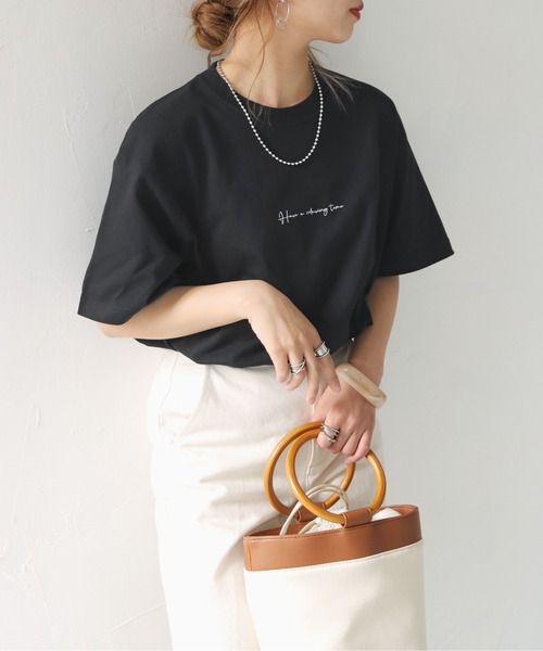 大人気WEB限定ロンTシリーズがTシャツになって新登場!United Athleの5.6ozのボディを使用し、綿100%でさらりとした着心地です。Web限定ロゴTシリーズで大好評を頂いたデザインが半袖Tシャツになってアップデートしており、筆記体デザインが、女性らしくTシャツでもカジュアルになりすぎない♪文字のサイズも主張しすぎないサイズ感で使いやすい1枚です。S・M・L展開でユニセックスで着用可能。メンズにもおすすめなのでシェアコーデもお楽しみ頂けます。≪Styling≫アウトはもちろん、インスタイルでもごわつかない程よい丈感とフィット感です。シンプルデザインなのでパンツでもスカートでもコーデを邪魔せず、アウターやキャミワンピース、ジャンパースカートのインナーとしてでも一枚でも着用頂けます。≪Fabric Detail≫伸縮性・・・ややあり透け感・・・ホワイトのみあり厚み・・・★★☆☆☆▼《お気に入り登録》のおすすめ▼【商品のお気に入り登録】気になるアイテムのハートマークを押してお気に入り登録すると完売カラーの再入荷通知やラストの通知、セール通知を受け取ることができます。【ブランドのお気に入り登録】新商品や再入荷など、いち早くブランドのお得な情報を受け取ることができます。ぜひご利用頂き、お買い物をよりお楽しみください。【She mo shelly / シーモシェリー】 定番で使えるベーシックデザインからディティールに拘ったデザインまで、トレンド要素をバランス良く落とし込んだ商品ラインナップをご提案しています。※撮影場所により、実際の色味と若干異なる場合がございます。 あらかじめご了承くださいませ。