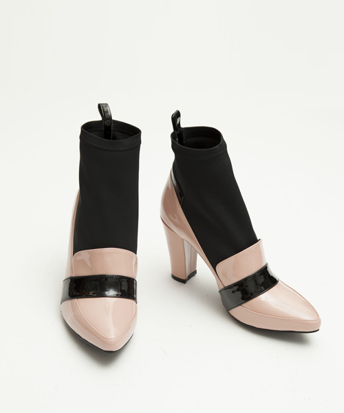 ◆ソックス付きのフェイクレイヤードパンプス◆ 大人の遊び心を刺激するソックスつきのデザインがユニークなポインテッドトゥパンプスです。艶感のあるエナメル調素材がリュクスなパンプスと、ストレッチ性のあるソックスを組み合わせました。ソックス部分のストレッチが効いているので履き心地もバツグン。ペンシルスカートやミモレ丈スカートとスタイリングすれば、トレンドライクな着こなしが完成します。 【SOLPRESA】 スペイン語で(SOL)ソル「太陽」と(SOLPRESA)ソルプレーサ「プレゼントを渡す時等に出るジャジャーン!という台詞」「驚き」から想像した言葉。世の中にあったものを、新しい発想を加えることで、新鮮で斬新なデザインにし、喜びや驚きを感じさせるブランド。