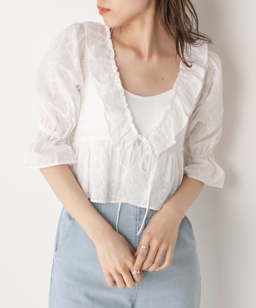 フリルデザインがレトロなブラウスカーデ ■デザイン ・大ぶりのフリルにさりげないリボンがガーリーなカーディガン。 ・ネックに施したフリルが顔周りを華やかに演出してくれます。 ・女性らしさを高めてくれるキャンディスリーブで二の腕もカバーしてくれます。 ・さらっとしたブラウス素材で合わせるトップス次第でオールシーズン着用いただけます。 ■カラー ・ホワイト(無地)/オフホワイト(綿レース)/アイボリー(メッシュ)の3色展開 ■スタイリング ・デニムパンツやロングスカートとのコーデがおすすめです。 ・Tシャツやカップ付きインナーにレイヤードするだけで旬見えな着こなしに。 ・ガーリー好きな方は、ミニスカートやキャミワンピの羽織っても。 ・足元は厚底サンダルで重めに。スニーカーで大人カジュアルに合わせてもオススメです。■POINTブラウス、フリル、カーディガン、リボン、キャンディスリーブ、レイヤード、コットン、綿素材、韓国ファッション、韓国コーデ、カーデ、夏服、夏コーデ、ガーリー、カジュアル、大学生コーデ、プチプラ、着まわし、着まわしコーデ、通学-----------------------------裏地:なし光沢感:なし透け感:あり伸縮性:なし-----------------------------model:166cm※着用、お取り扱いの際は、商品についている品質表示とアテンションタグを必ずご確認下さい。※ご覧のモニター環境や撮影環境により実際の商品と多少色味が異なって見える場合がございます。ご理解の程よろしくお願いいたします。 ■お気に入り登録のおすすめ【気になるアイテムを登録】ハートをクリックしてお気に入りに登録すると完売カラーの再入荷やラスト1点の通知、セールの通知を受けとることができます。【ブランドを登録】新商品や再入荷、セール通知など、いち早くブランドの情報を受けとることができます。