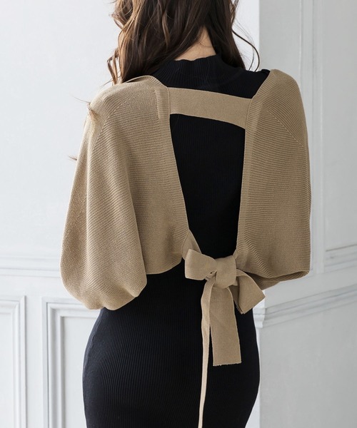 さっと羽織れるボレロタイプのカーディガン。 ゆとりのあるドルマンスリーブで身体のラインをカバー。 コンパクトな着丈でスタイルアップもアシストしてくれます。 涼し気なシアーニット素材を使用しました。 バックリボンデザインで後ろ姿がキュートな1枚です。 【カラー】ブラック・ベージュ・アイボリー 【サイズ】ONE 【素材】ポリエステル100% 【透け】やや有り 【裏地】無し 【ストレッチ】有り 【ポケット】無し 【ファスナー】無し ※ご使用のモニターや周囲の環境により実際の商品と多少色味が異なる場合がございます。 ※モデル画像はイメージです。実際の商品に近い色味は商品単品の画像をご確認下さい。 ※生産時期によりカラーやサイズに多少の誤差が発生する事がございます。 ※密閉した状態で商品を入荷しておりますので、店頭にある商品とは違い匂いが多少強く感じられるものもございます。 数日のご使用や陰干しなどで気になる匂いはほとんど感じられなくなりますので、お試しいただきますようお願いいたします。 ■商品のお気に入り登録■ 完売カラーの再入荷や、セール、ラスト1点など通知を受け取ることができます。 ■ブランドのお気に入り登録■ 新商品や再入荷などの情報をお知らせいたします。 是非、お気に入り登録をご活用下さい。