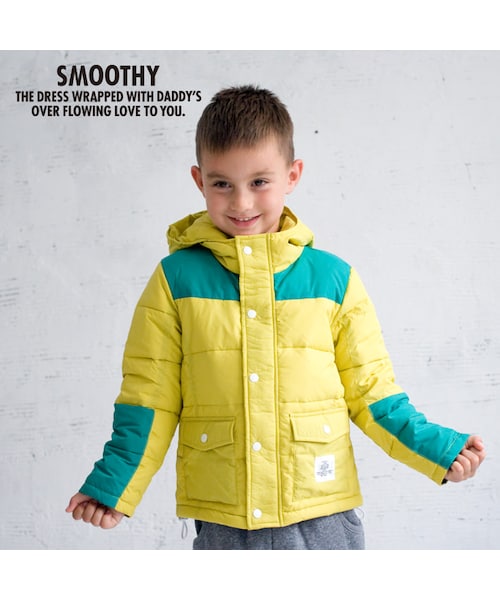 2色の同色系ナイロンを使用した中綿ジップパーカーになります。フードに大きく入ったロゴプリントがポイントで、裏地は各カラー配色になっております。前立てはボタンとジップの二重構造でしっかりと風を防いでくれます。裾の両サイドに付いたドローコードで裾の絞りを調節することができます。毎年人気の高い中綿がしっかりと入ったフード付きのアウターの2014AWバージョンとなっており、今季より中綿のクオリティーが上がりダウンのような弾力のある中綿を使用しています。model身長:114cm 着用サイズ:M