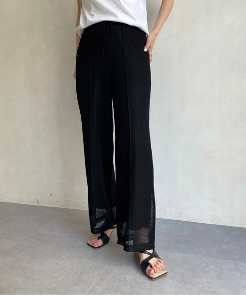 涼し気なスタイリングを作るメッシュパンツ 商品ポイント ・トレンドのメッシュ素材 ・足首まで裏地が付いており、足元に透け感が出る仕様 ・ベルト部分はニット素材になっており、伸びが良くノンストレス ・フロントのピンタックがすっきり、きちんと感もプラス スタイリングポイント ・シャツやブラウス合わせできれいめに ・パンツに表情があるのでシンプルにTシャツ合わせでもおしゃれにキマる ・ワンピースとのレイヤードもおすすめ ********************** 透け感:なし 裏地:あり 伸縮性:あり 光沢感:なし ********************** ▼洗濯方法 液温は30℃を限度とし、洗濯機で非常に弱い洗濯ができる ※撮影場所やお使いのモニター環境により若干お色味が異なる場合がございます。 特にロケの撮影では明るく見える傾向にございます。 ※商品はサンプルで撮影をしております。若干の仕様が変更になる場合がございますので予めご了承の上ご注文くださいますようお願いいたします。 ▼商品のお気に入り登録 完売カラーの再入荷通知や、ラスト1点の通知、セールの通知も受け取ることができます。 ▼ブランドのお気に入り登録 新商品や再入荷など、いち早くブランドのお得な情報を受け取ることができます。