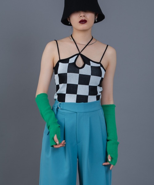 【チェッカー柄ベアトップ】4/21~新色のホワイトが発売!おしゃれなホルターネックタイプのベアトップ少し短めでヘルシーな肌見せでスタイリングにアクセントを■POINT・トレンドのホルターネックタイプのベアトップでオシャレ感UP・フロントでVになった肩紐がデコルテラインを華奢に見せてくれます・シーズンレスで着回し可能、デコルテの大きく開いたトップスとも高相性◎・ホルターは華奢な紐で、前後結ぶ部分でのアレンジが可能。・伸縮性のあるニット素材で程よくボディラインにフィット◎■COORDINATEシャツの上からビスチェのように着用するだけでなく、ジャケットのインナーとして着用すると今年らしい着こなしに。ローウエストデニムやミニスカートと合わせてレトロな90's風にスタイリングするのもおすすめです◎‐‐‐‐‐‐‐‐‐‐--------------裏地---あり透け感---なし伸縮性---あり生地感---普通‐‐‐‐‐‐‐‐‐‐--------------※画像の商品は光の照射や角度により、実物と色味が異なる場合がございます。※製品によっては染料の特性上、湿った状態や汗をかいた状態での長時間の放置、または摩擦により、他のものへ色移りする恐れがありますので、着用時にはご注意下さい。 ※お洗濯は洗濯ネットを使用し、他のものとの混合洗いはお避け下さい。色落ちや色移りの原因となります。 タンブラー乾燥はお避け下さい。 ※風通しがよく、湿気の少ない日の当たらない場所で保管して下さい。 ※また製品加工上、お手元に届く際に匂いが生じる場合がありますが、 ご使用を続けていく事により匂いは軽減されます。■商品のお気に入り登録お気に入りアイテムの値下げ・再入荷・在庫1点などの通知を受け取ることができます。■ブランドのお気に入り登録新商品や再入荷、セール、クーポン配布などお得な情報を受け取ることができます。---------------------------------------------------------------Solace/ソレイス“MODE”媚びない自分らしいシルエット“CASUAL”シーンレスで手に取りやすいプライス“ART”どこかエッジのある遊び心トレンドにとらわれず “自分” とマッチするスタイルを提案※ご注文いただいた予約商品のお届け時期の確認は、注文履歴ページより行えます。※タグ・バーコードのついたシールには、サイトのご案内と異なるカラー名が記載されていることもございます。ご了承ください。