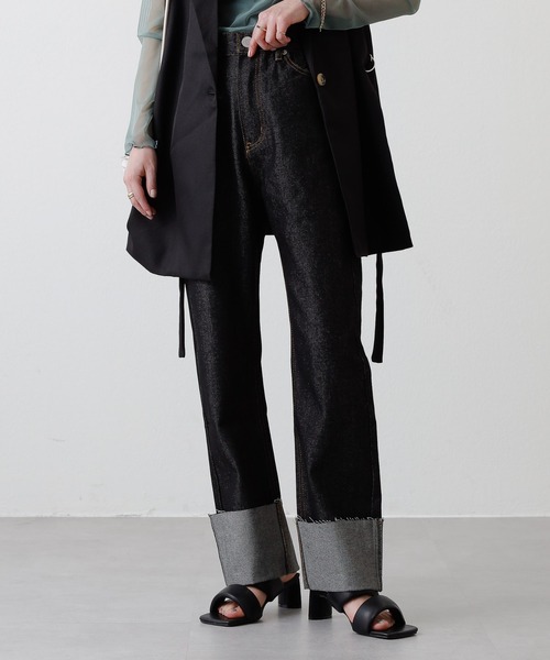 【切りっぱなしデザインのロールアップデニムパンツ】 11オンスリジットデニムを使用したしっかりとした生地ストレートパンツ。 裾端が切りっぱなしのデザインで、自分でロールアップ巾を調節できるストレートシルエットのロールアップパンツになります。 すっきりとしたストレートシルエットのパンツで美脚見えします。 履けば履くほど味の出るデニムでロングシーズン愛用していただけます。 ・ロールアップ丈の調節可能 ・履けば履くほど味の出るデニム ・シーズンレスで活躍するデザイン 【コーディネート】 ボリュームのあるロゴT、シャツやブラウスなどと合わせていただくカジュアルなコーディネートがおすすめです。 ハイウエスト×ストレートなシルエットなのでインスタイルもすっきり着こなせます。 様々な形のスニーカーやサンダル、ブーツなど、シューズ合わせが豊富なのもポイント。 オールシーズン使えるので1着持っていると重宝する一本。 ■素材・洗濯について 素材:綿100% ※着用、お取り扱いの際は、商品についている品質表示とアテンションタグを必ずご確認下さい。 ※商品タグに記載されている商品名がWEBでの表記名と異なる場合があります。 ※画像の商品はサンプルです。実際の商品と仕様、加工、サイズが若干異なる場合がございます。 ※照明の関係により、実際よりもやや明るく見える場合がございます。またパソコンなどの環境により、若干製品と画像のカラーが異なる場合もございます。予めご了承くださいませ。 【お気に入り登録】してお得な情報をCHECK!! ・「商品のお気に入り登録」で再入荷通知や、ラストの通知、セール通知も受け取ることができます。 ・「ブランドのお気に入り登録」で新商品や再入荷など、お得な情報を受け取ることができます。