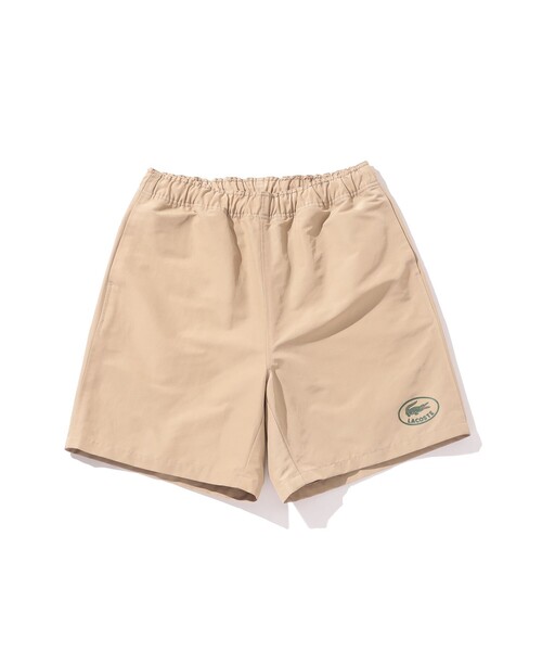 フロントのブランドロゴ使いがアクセント シンプルなデザインに絶妙な光沢感が印象的なナイロンタフタショーツが登場。しなやかでシワになりにくい素材は様々なシーンで気兼ねなく着用いただけます。最大の特徴はブランドを象徴するフロントのプリント使い、バックポケット付近の刺繍使いも見逃せません。また、イージー仕様でワイドなシルエットですが、ルーズになり過ぎないまとまりの良さもポイントです。同素材のブルゾン(11-18-6459-462 LACOSTE × BEAMS / 別注 Tafta Blouson)とのセットアップスタイルもおすすめです。 Model:H177cm W65kg Size:L ※商品の色味は白背景商品単体で撮影した画像をご参照ください。 ※屋外撮影による光の当たり具合やパソコンなどの閲覧環境によって、実際の色味と異なって見える場合がございます。予めご了承ください。 LACOSTE / ラコステ 1933年フランスの有名テニスプレイヤー、“ルネ・ラコステ”により誕生したブランド。当時フランス最大のニット製造会社のオーナー社長アンドレ・ジリエと共に、緑色のワニのロゴが刺繍されたポロシャツを製造する会社を設立。以後、定番アイテムのポロシャツは全世界で愛され続けています。フランス生まれのスポーツカジュアルブランドとして日本でもとても人気です。