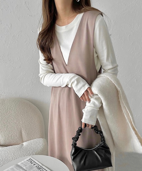 《人気ワンピ、リニューアルして再販!》 サイズ感や仕様はそのまま、 脇の開き具合、それに伴うバスト寸を前後身頃で調整し、 着心地を改善しました。 すっきりシャープなVネックと、 ふわっと揺れるフレアがフェミニン&美ラインな ジャンパースカートタイプのワンピース♪ 滑らかな落ち感と上品な質感が人気の 厚手カットソー「ポンチ素材」を使用しており、 シワになりにくく、お手入れも楽ちん! 伸縮性があり、動きやすい着用感ながらも キチンとした印象にみせてくれる1枚です。 サイドファスナー無し。 スポッとかぶれるプルオーバー仕様。 アームホールを少しゆったりと仕上げ、 着脱もストレスなく行えるサイズ感にこだわりました。 春夏はTシャツやノースリーブ、 秋冬はシャツやニット…など、季節や気分に合わせて レイヤードコーデが楽しめるオススメitemです! 裏地なし ※撮影時のライティング、ご覧になっているモニター・PC環境により 実際の商品と色味が異なって見える場合がございます。 ご了承の上お買い求め下さい。 素材: ポリエステル95% ポリウレタン5% ≪備考≫ 伸縮性:あり 透け感:なし 生地の厚さ:やや厚手 肌ざわり:さらっとしている その他:ポンチ素材 生産地:ベトナム 洗濯機:可 ドライクリーニング:可 ウェットクリーニング:可