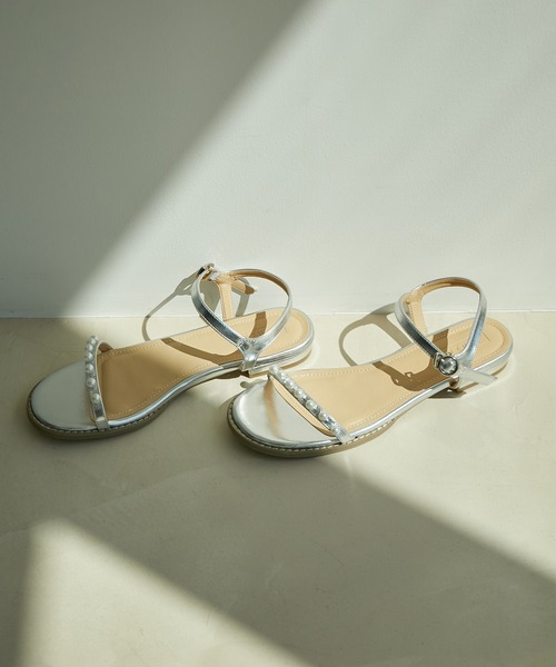 女性らしさUPなパールがアクセント!【デザイン・シルエット】シンプルで履き易い一本ベルトにパールをあしらったサンダル。ピースを効かせることで甘すぎない仕上がりに。屈曲性のある仕様にしているので見た目以上に履き易いです。ワンピースにはもちろん、デニムに合わせて足先のパールをポイントにしていただくのもおすすめです。【カラー】定番のブラックとアクセントにぴったりなシルバーの2色。パールをプラスして大人可愛い組み合わせにしました。※画像の商品はサンプルです。 実際の商品と仕様、加工、サイズが若干異なる場合がございます。